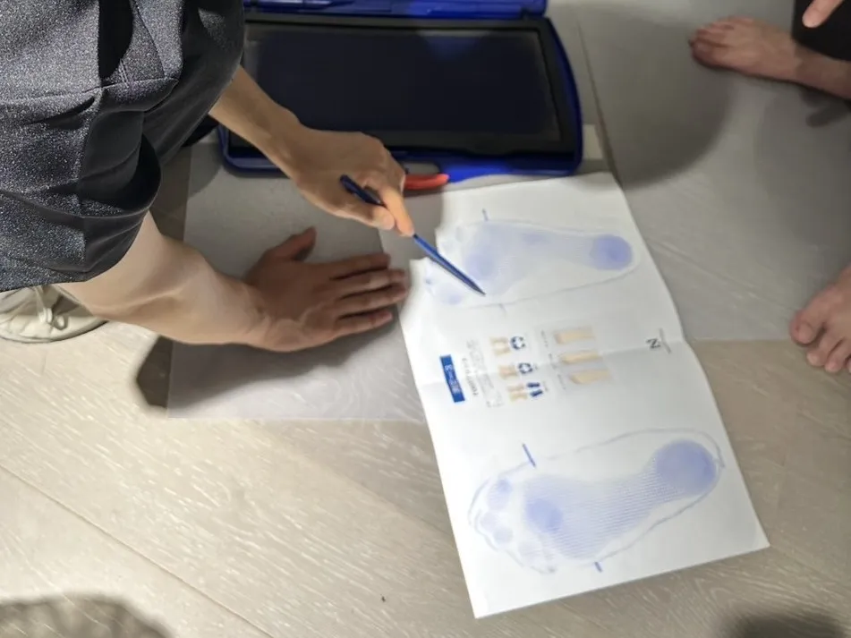 足の状態や歩行の特徴、靴の状態を確認し、リスクを可視化します。